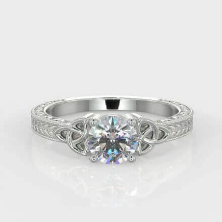 Round Brilliant cut diamond solitaire ring set in 18K white gold. The centre diamond is a 0.50 carat Round Brilliant cut diamond set in a four-claw setting on a Celtic style band. Have something else in mind ?Please contact us to arrange an appointment to view our full range of diamond rings in stock at our Dublin City Factory. We are located in the heart of Temple Bar Dublin, and have over 1000 rings in stock for you to view.The style of this ring is available from €3380.All Rings are available in 18K White Gold , 18K Yellow Gold , 18K Rose Gold & Platinum. Ring Reference JS053.